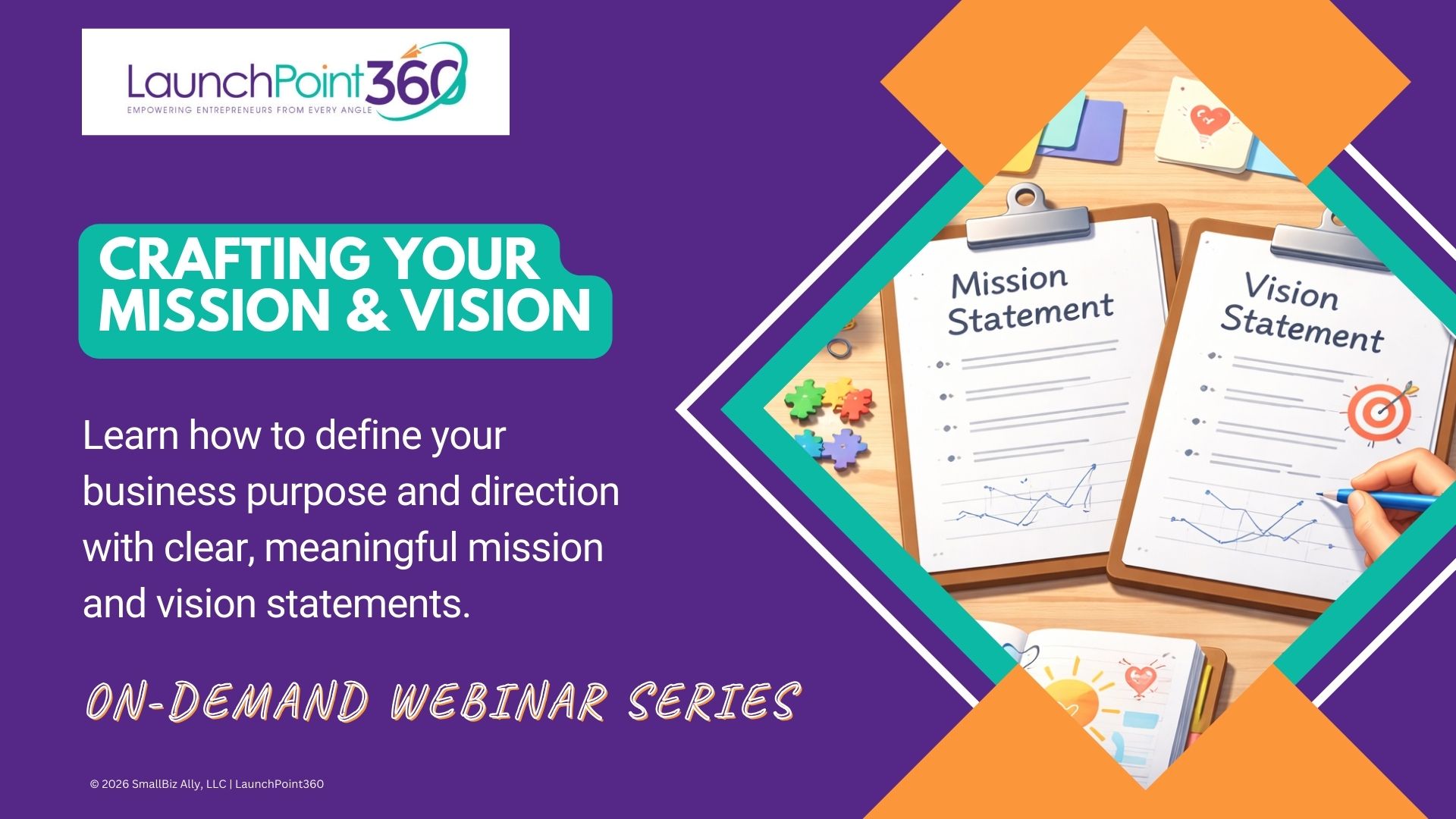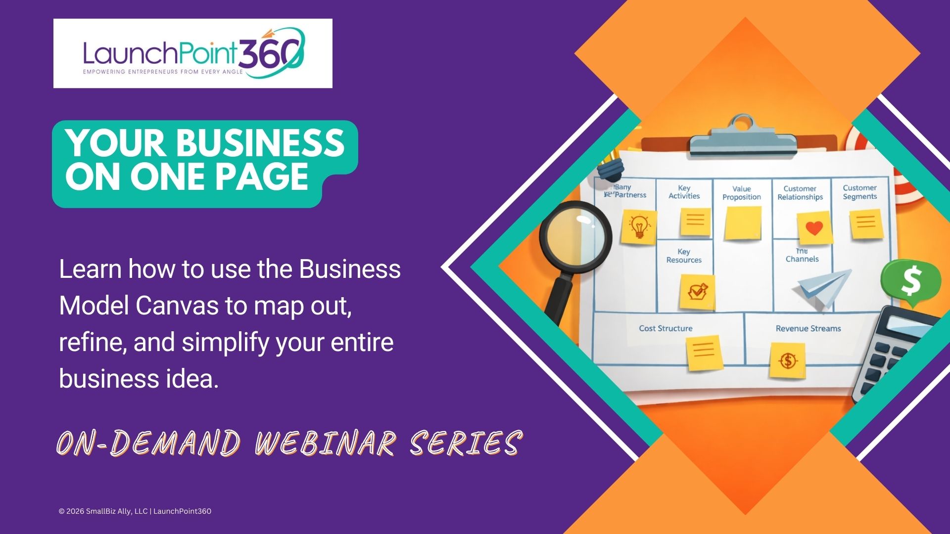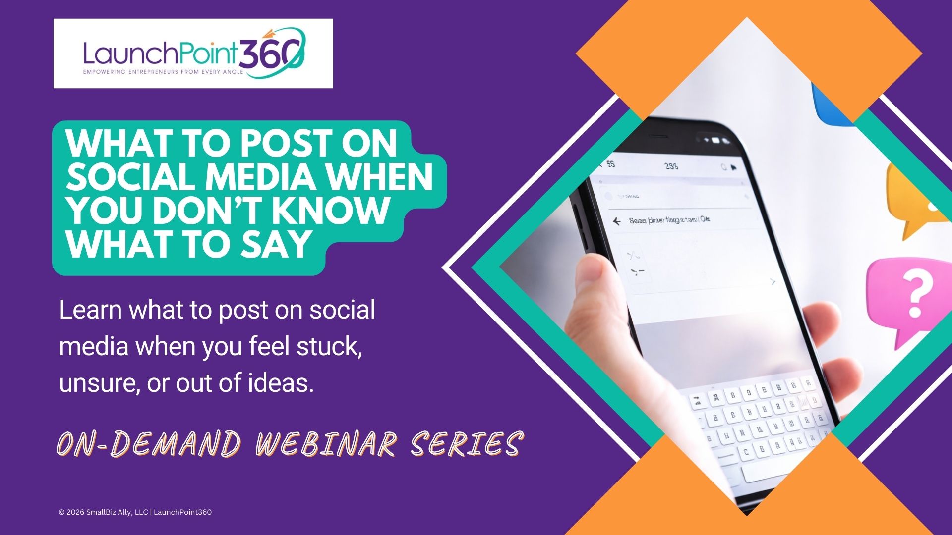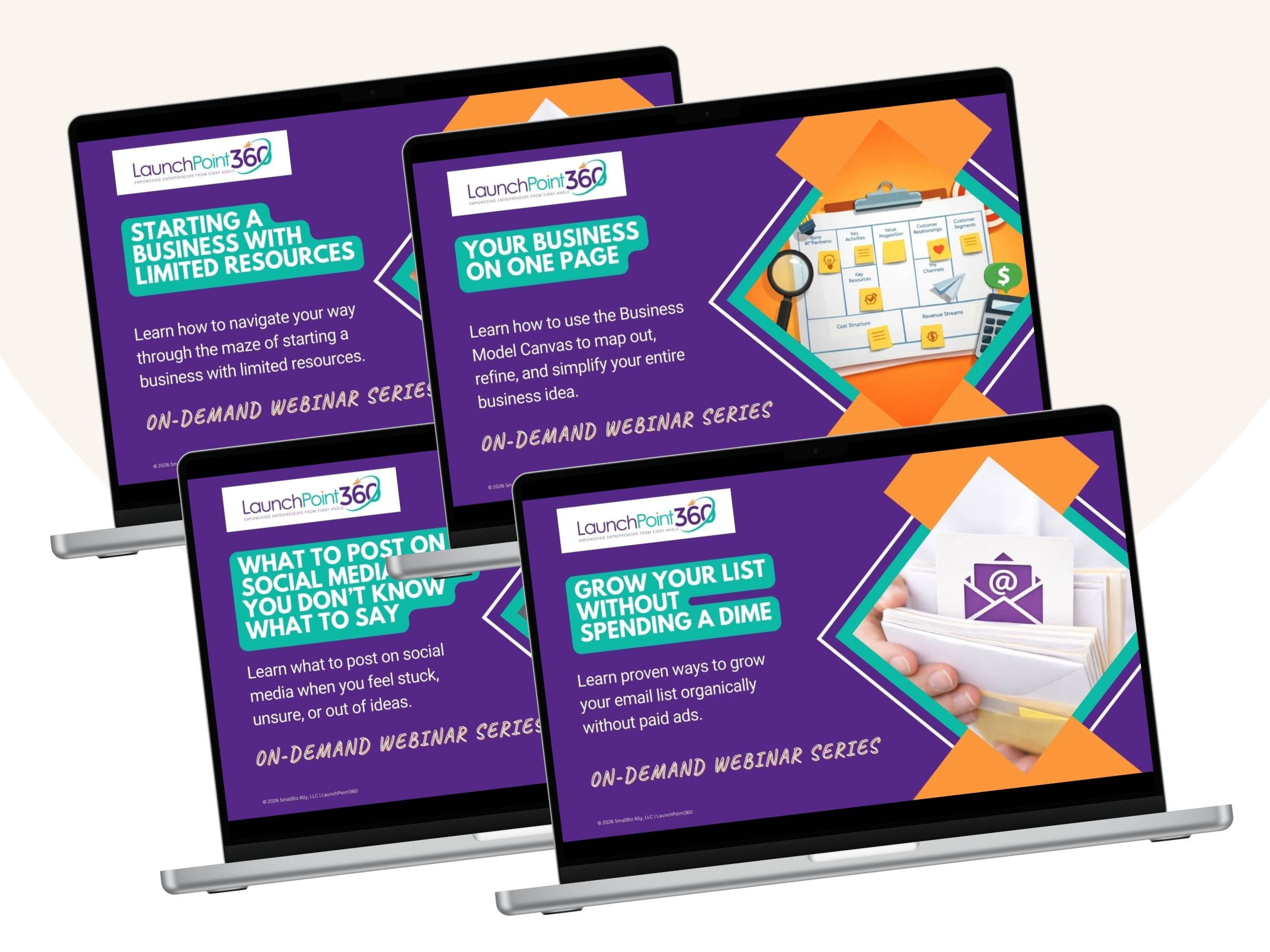 Each webinar is a focused, 30-45-minute training that explores a specific aspect of small business ownership. Topics range across the many stages of entrepreneurship, from getting started and building a strong foundation to marketing, content creation, audience growth, and business planning. Rather than covering everything at once, each session is intentionally built to help you work through one problem, decision, or skill in a practical and approachable way.