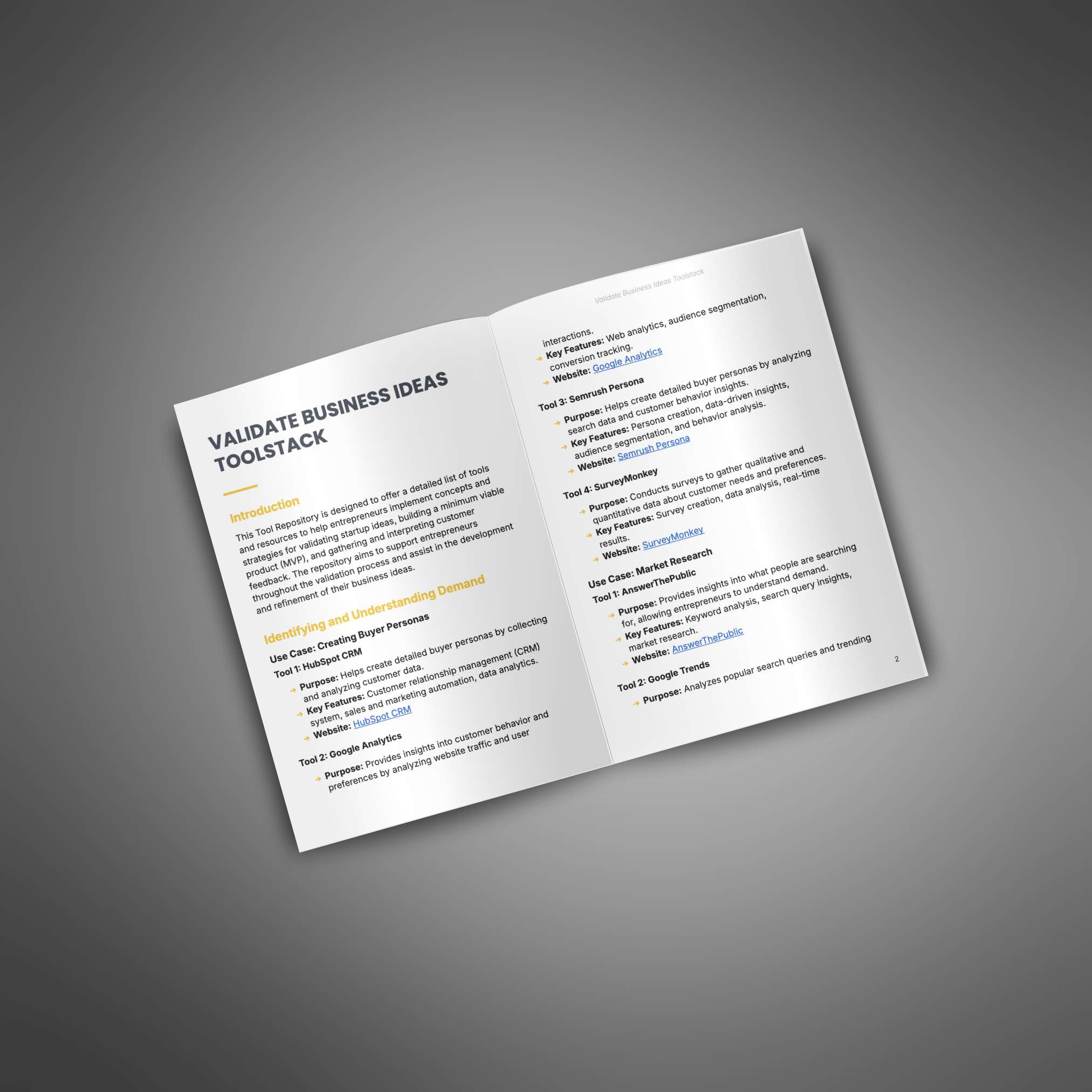 1 Digital PDF: Validate Business Ideas – Tool Stack